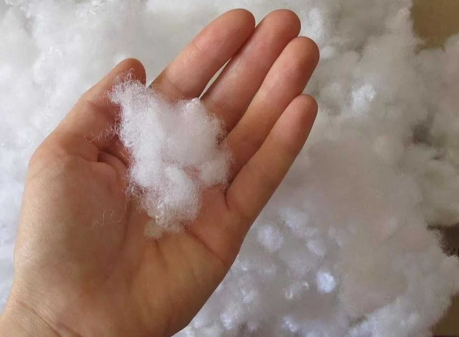 - Холлофайбер. Это сцепленные между собой полиэфирные волокна в форме мелких шариков. Считается лучшим наполнителем, так как выдерживает многократную деформацию, быстро восстанавливает первоначальную форму, качественно заполняет даже самые мелкие, сложные по форме детали.