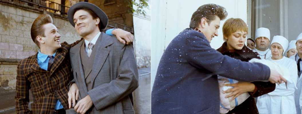 Это сейчас мы видим мир, «раскрашенный» зрительной мерой в самые разные яркие насыщенные краски и оттенки. А до того он был серо-черным, что хорошо показано в фильме – на противопоставлении уныло одетого большинства и ярких костюмов стиляг. Это были первые звоночки, предвестники общества потребления.