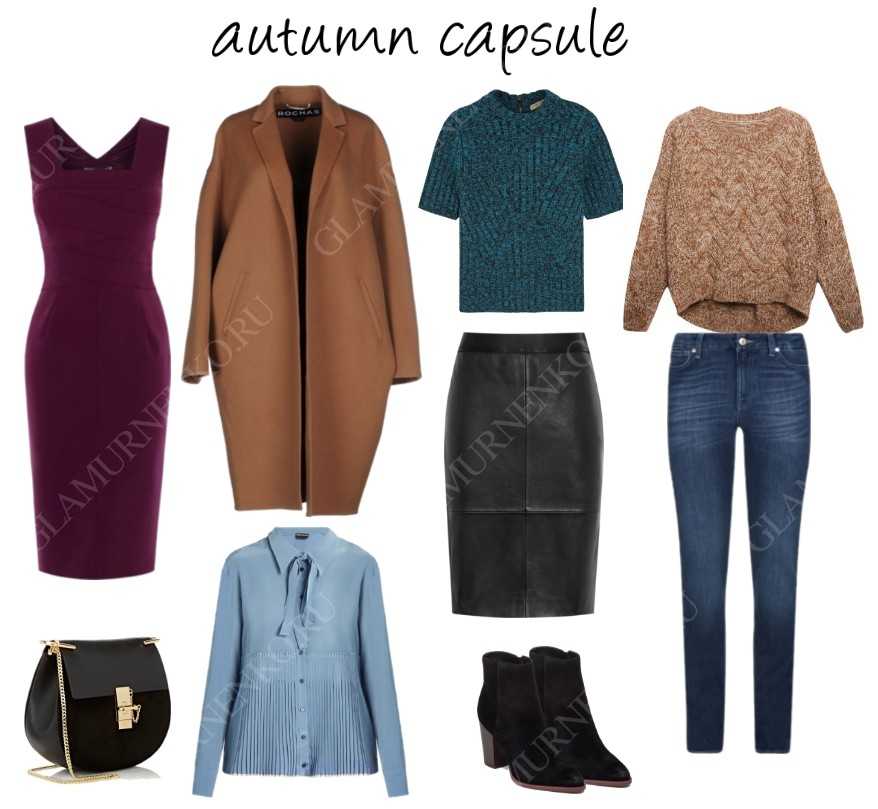 Рис.8. Базовый гардероб на осень. Куртка, кардиган, джинсы, юбка, свитер, ботинки.