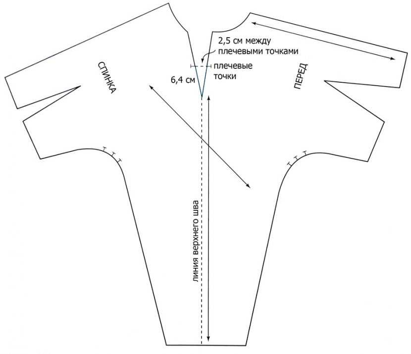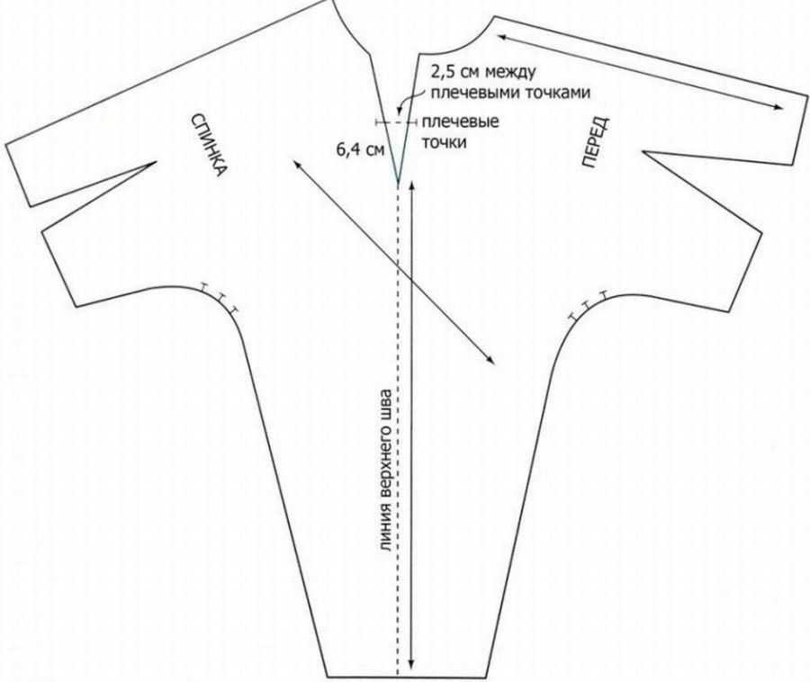 - В спинке сразу обозначается горловина. Ее размер – диаметр, равный полуобхвату шеи.