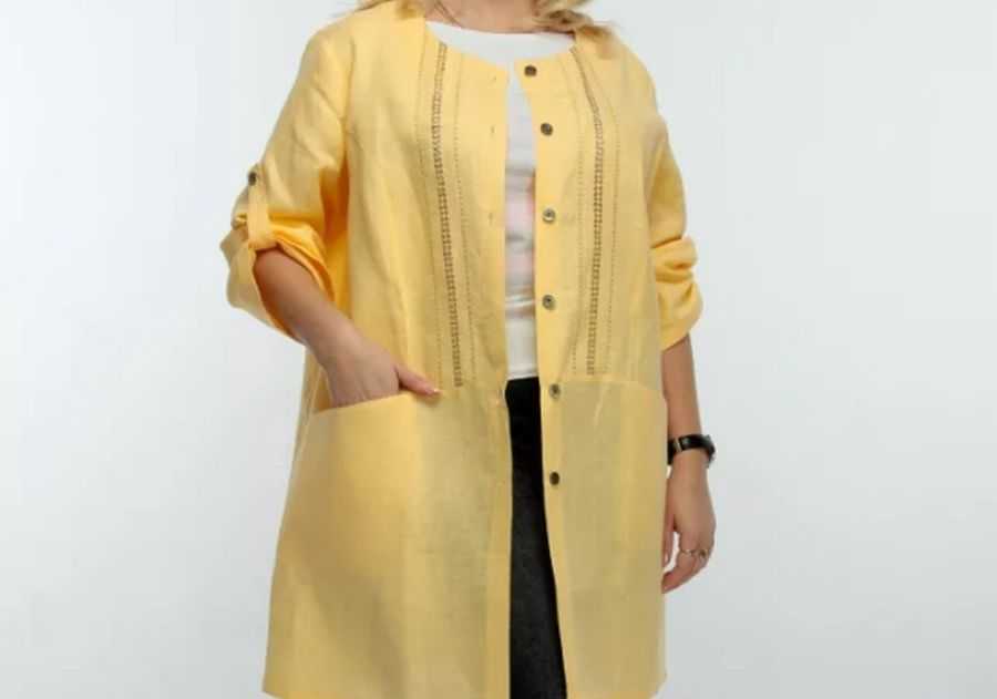 Модель жёлтого жакета очень красиво и красочно выглядит. Он идеально подойдт для весенних деньков.