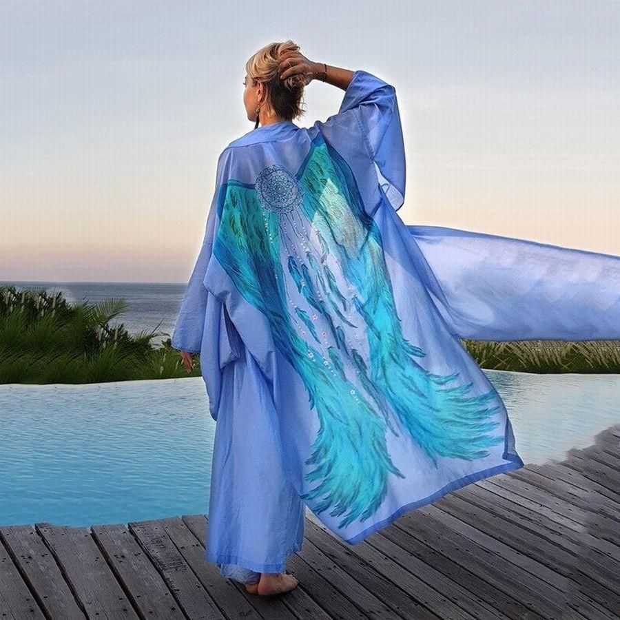 Длинное кимоно будет лучшим вариантом, нежели парео, так как оно не прозрачное и очень удобное в носке.