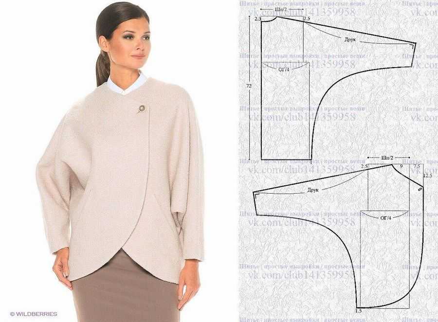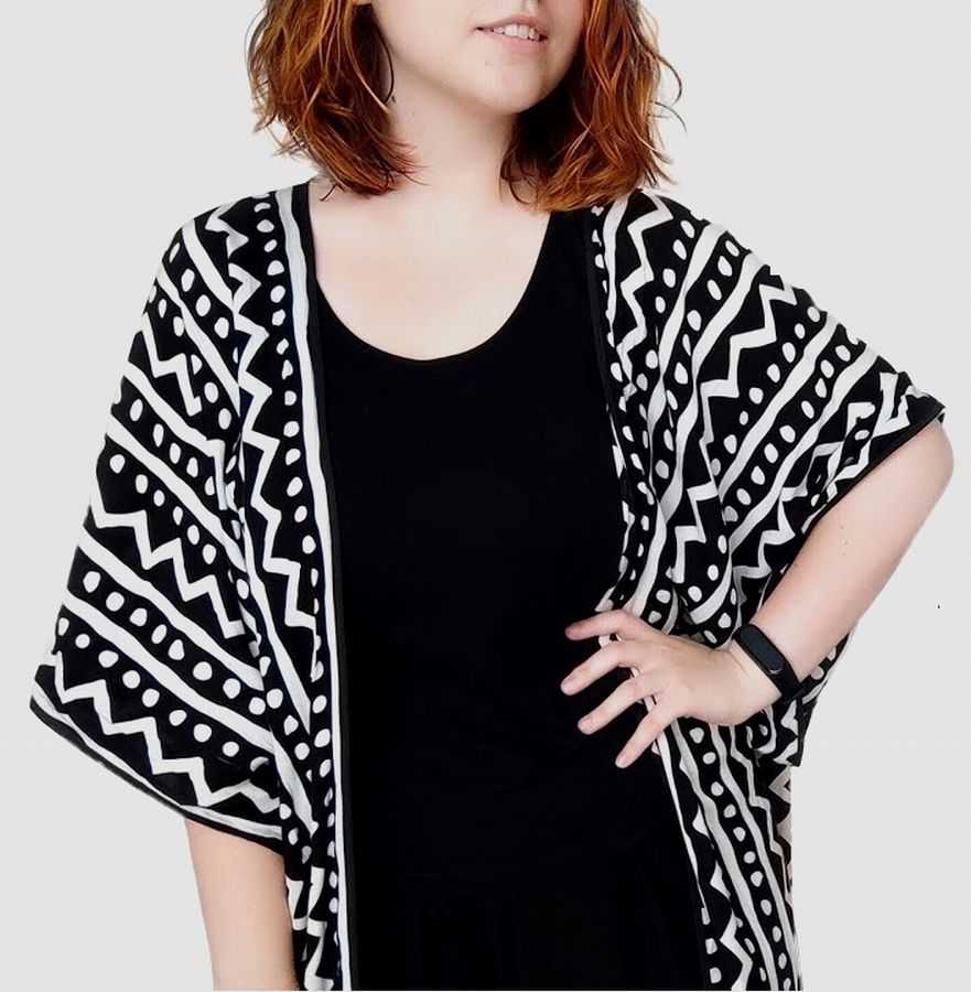 Жакет-накидка в стиле кимоно и выкройка.