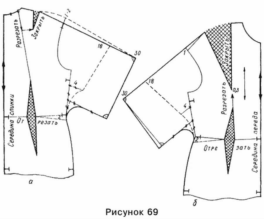 - Соединить место среза с основной частью выкройки по плечевой линии.