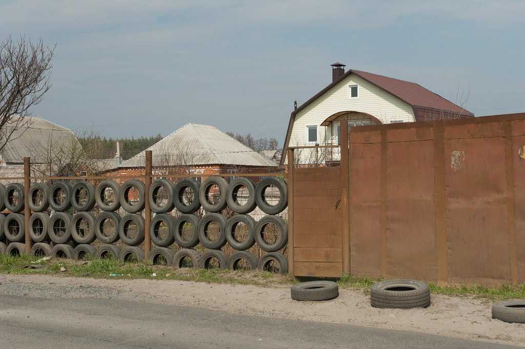 Начнем, к примеру, с шин. Этого добра всегда накапливается очень много, так что со временем возникает вопрос, куда бы их деть. Утилизация стоит денег, а забор принесет еще и пользу. Выбор очевиден.