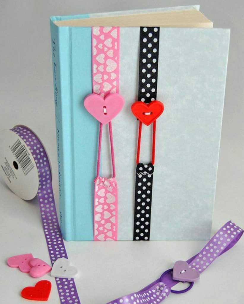 Впрочем, закладку подобного типа можно оформить и в девчачьем стиле, пришив ленточки, пуговицы, бусины.