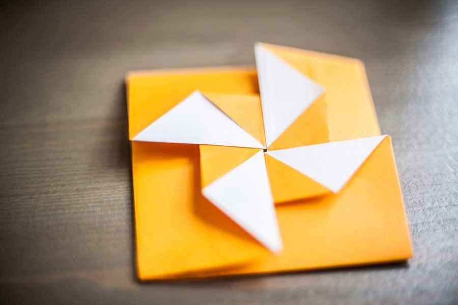 Края квадратиков, получившихся в результате шага 5, загните от центральной оси к их центру.