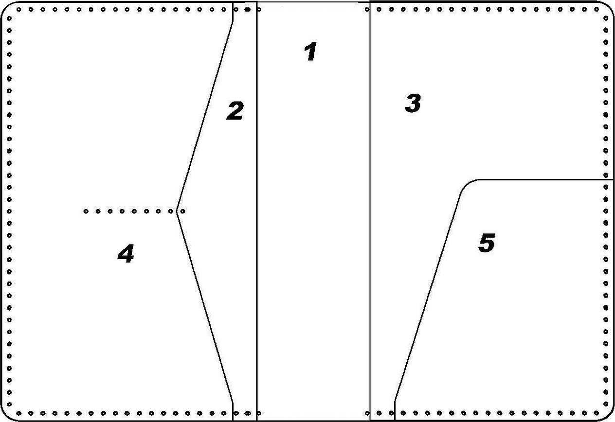 - Вырезать из картона детали кошелька. Наложить друг на друга, откорректировать размер. Расположение сфотографировать для облегчения работы.
