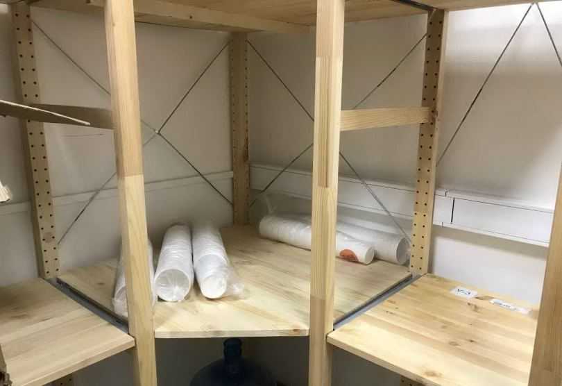 Этот вид конструкции не так практичен дома. В основном он применяется на производстве. Внутри него располагаются перестенки, которые изготовляются из досок, аналогичным полкам.