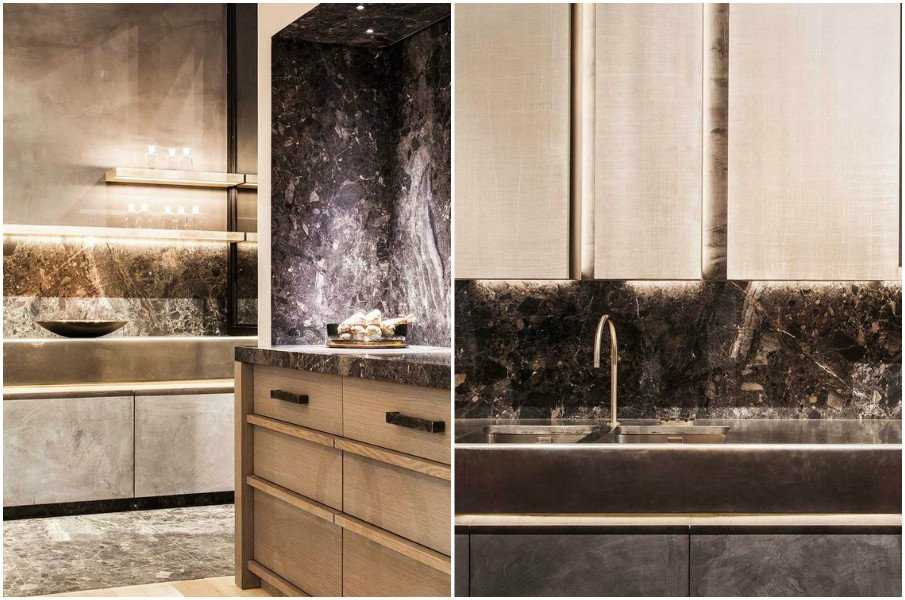 Шикарное внутреннее убранство мраморной кухни.