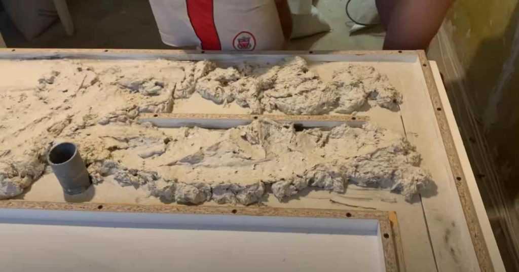 Если бетонная столешница для кухни предполагает установку раковины и варочной поверхности, то места под них необходимо предусмотреть при создании опалубки. Для этого, внутри опалубки делают короба, размеры которых соответствуют размерам раковины и варочной поверхности.