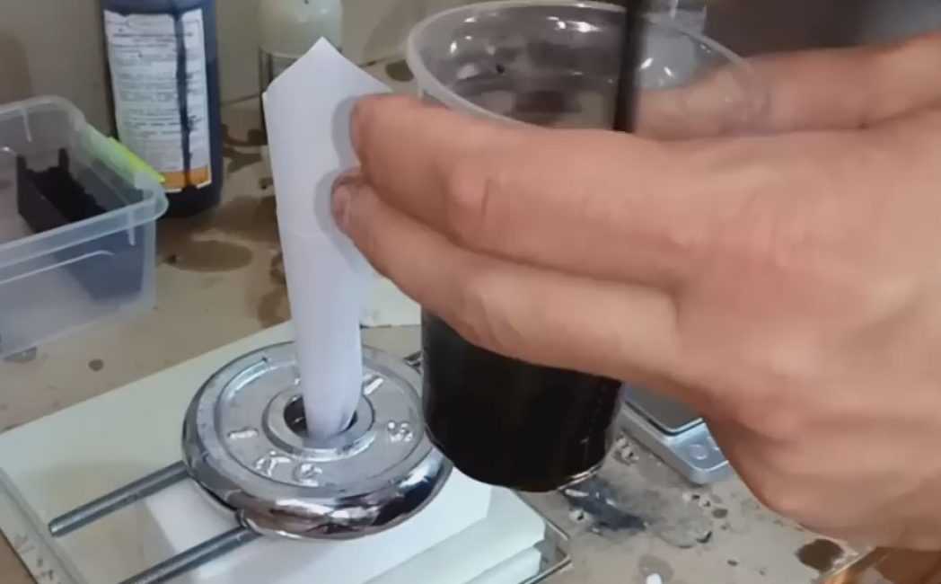 - В ёмкость наливается ацетон до уровня 1–1,5 см.