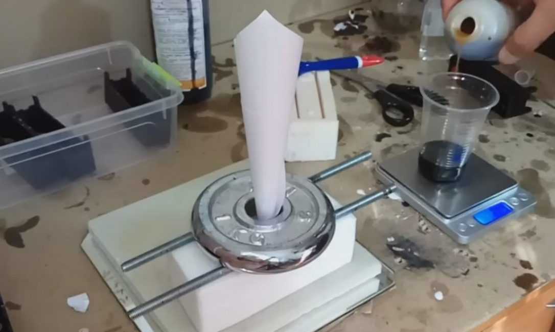 Из бумаги делаем одноразовую воронку и вставляем её в литник формы.