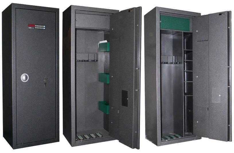 Кроме того, требования по размещению следующие: 0,5 м от окна, 1.5 м от входной двери, 1 м от батарей. Кстати, сейф для оружия может быть изготовлен из дерева, но обязательно оббит железом.