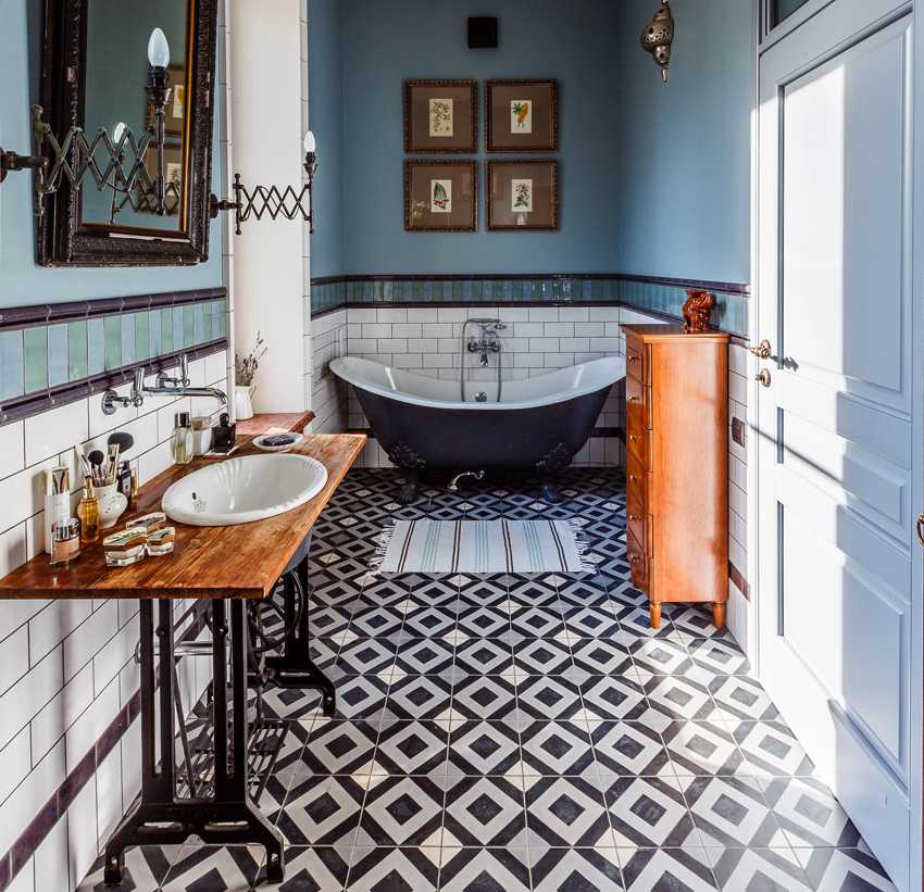 Бюджетный вариант оформления, который по-прежнему остаётся популярным, особенно для небольших ванных комнат.