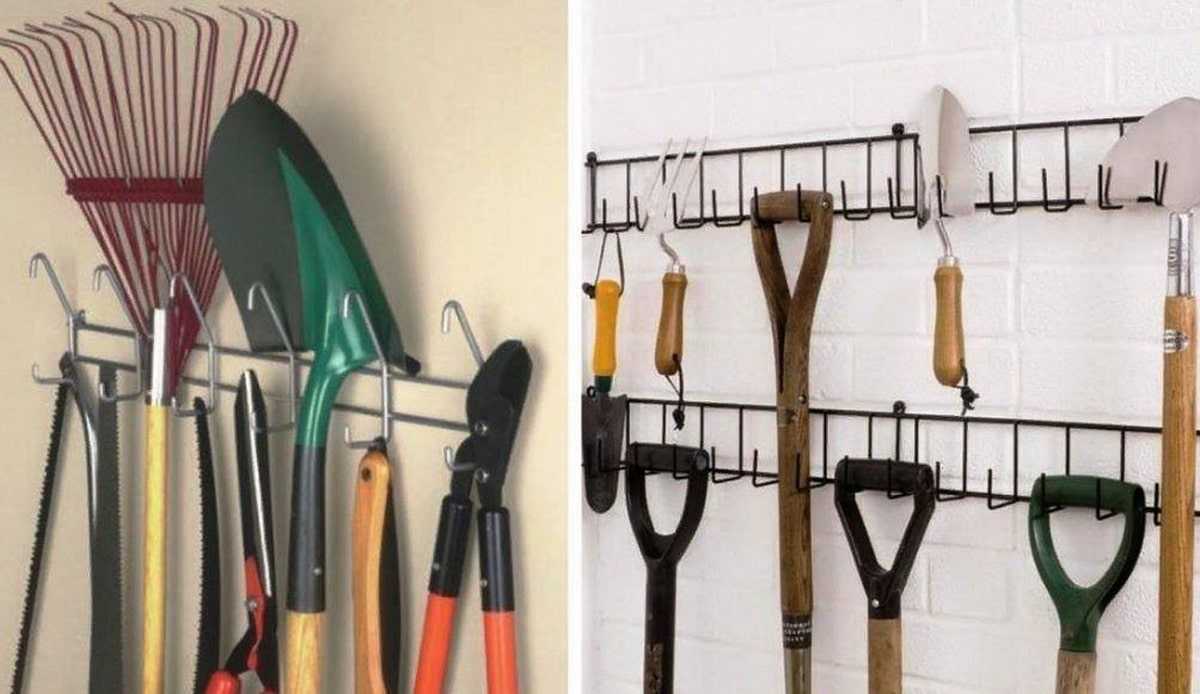 Обратите внимание! При хранении на стенах потенциально опасных предметов, таких как лопата, грабли, тяпка, серпы, нужно убедиться в том, что они там надежно закреплены и не упадут. В противном случае последствия могут быть самые разные и не всегда положительные