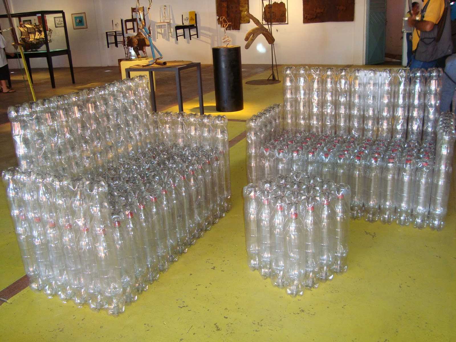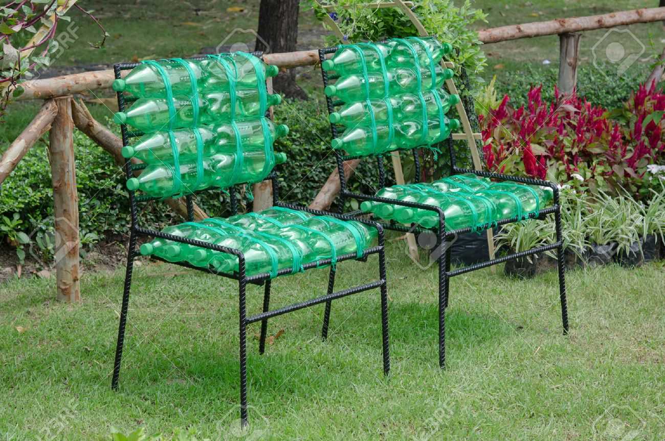 Не тратиться на мебель для дачи можно использовав пластиковые бутылки. Такие изделия собираются за пару часов при достаточном количестве тары. Мебельные конструкции легко трансформируются, поэтому при размещении гостей не составит труда переделать 2 кресла в кровать.
