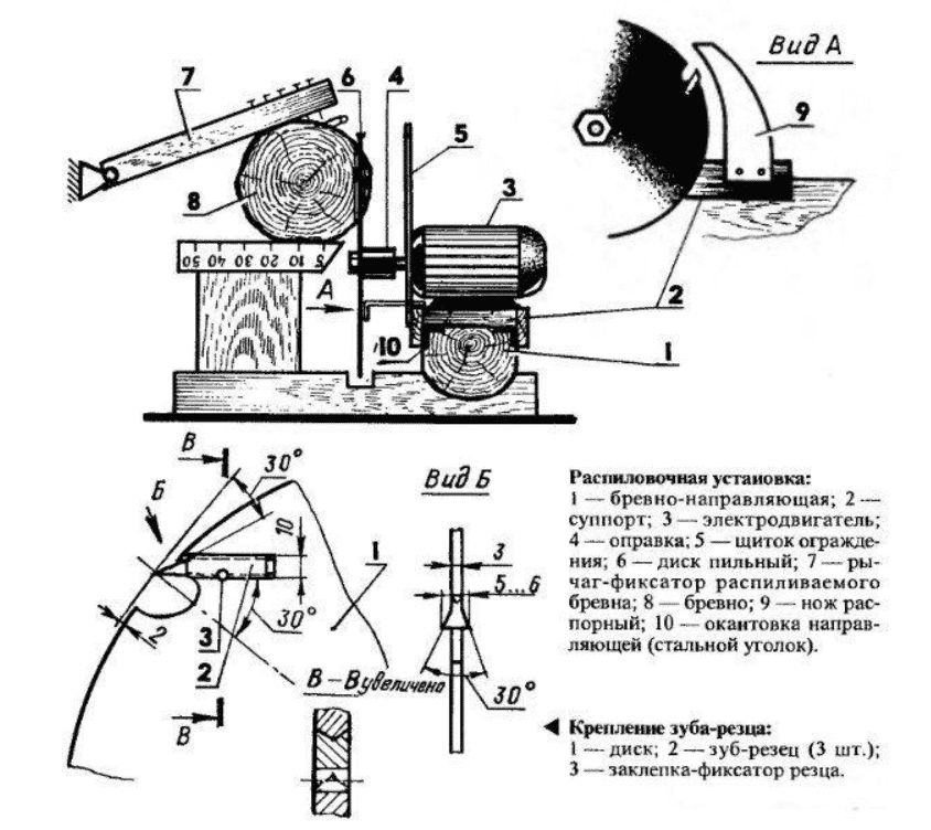 Совет! Подобные конструкции часто используются небольшими предприятиями. При относительно небольших затратах можно получить эффективный инструмент, способный провести продольную распиловку большого количества бревен. Однако для разового использования инструмент нельзя назвать эффективным – слишком большие затраты.