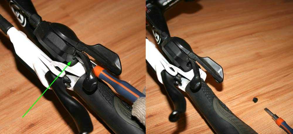- Ослабляем болт фиксатора на переключателе скоростей и отсоединяем тросик: