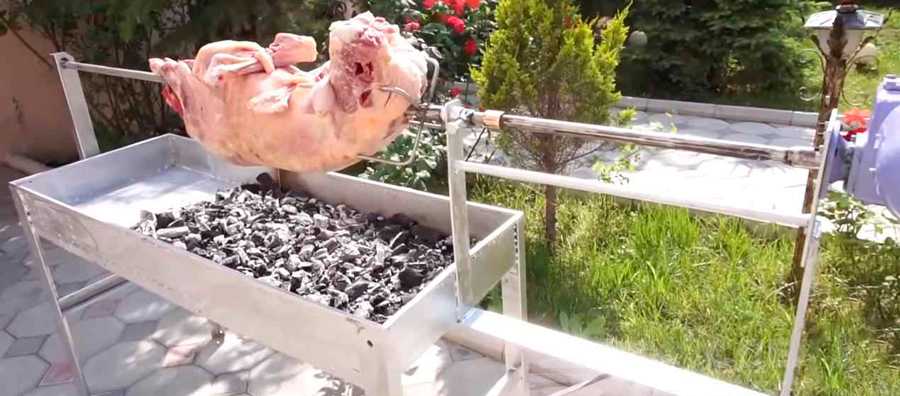 Скорость вращения вертела не обязательно должна быть постоянной. Обычно ее регулируют исходя из степени прожарки всех сторон куска мяса (тушки)