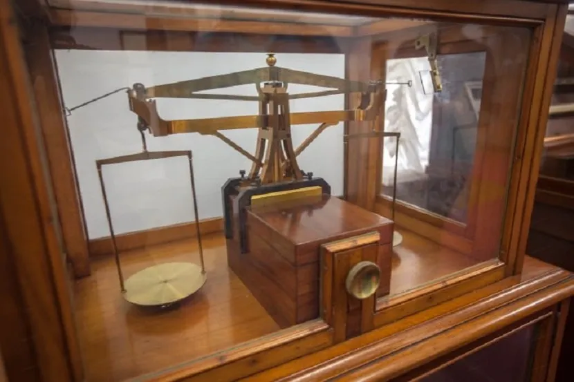 Чашки измерительного прибора были сделаны из алюминия, что по тем временам считалось чуть ли непозволительной роскошью. Выполнить прибор полностью из такого дорогого металла не смогли позволить себе даже столь богатые колонизаторы. Поэтому алюминий частично заменили на золото.