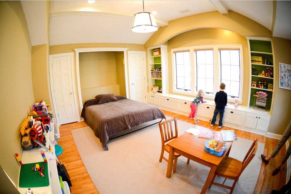 Детская мебель-трансформер – еще одно популярное у дизайнеров направление для творческих экспериментов. Чаще всего, чтобы освободить как можно больше места, происходит объединение встроенной кровати с рабочим местом для школьника, правда, в таком случае есть один достаточно серьезный недостаток – можно пользоваться либо рабочим местом, либо кроватью. Еще минус – для такой конструкции не подходит стационарный компьютер, ведь тогда каждый раз придется собирать/разбирать и коммутировать системный блок-монитор-клавиатура-колонки-мышь. Да и моноблок станет не лучшим решением, так что придется выбирать между ноутбуком и планшетом.