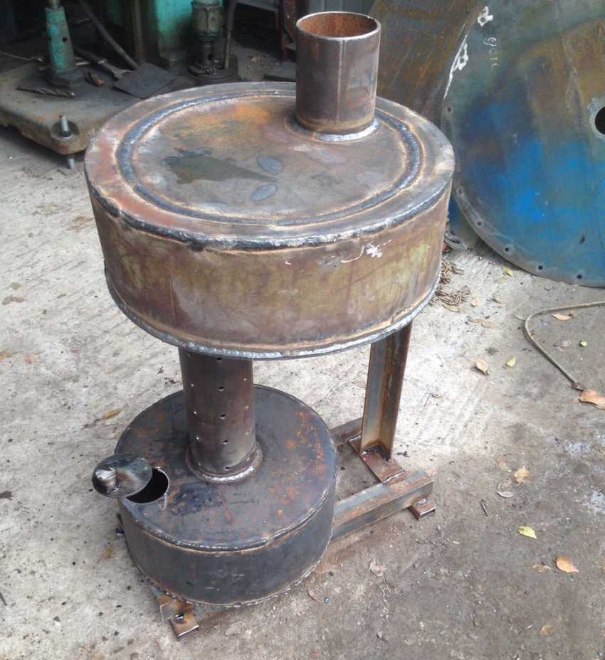 - из тормозного диска и куска стального листа делаем поддон для отработки. В верхней его части привариваем крышку;