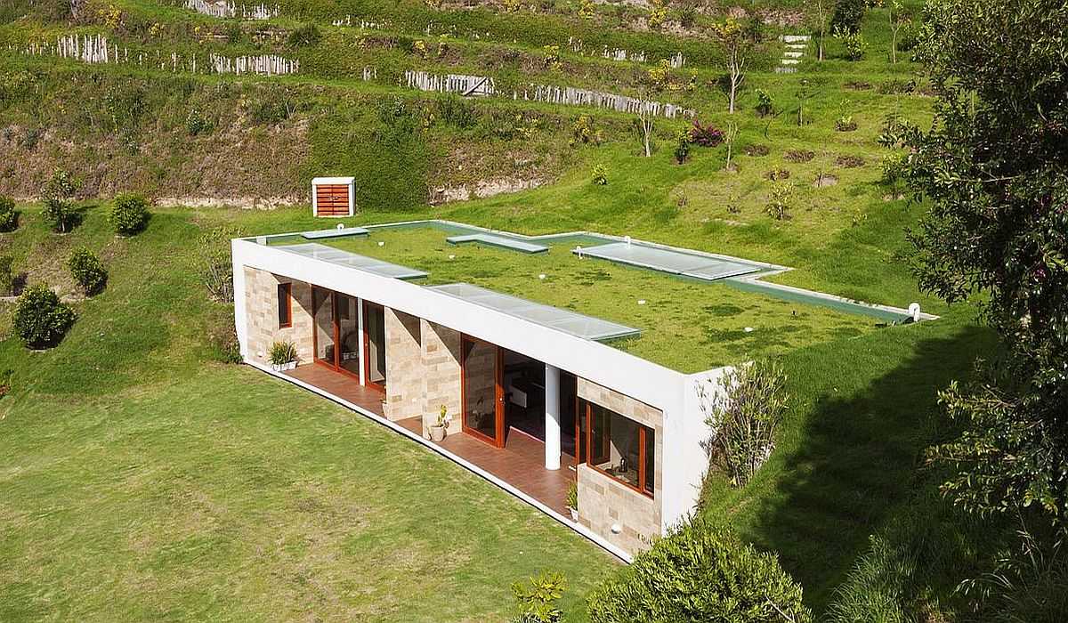 Такой тип дома под землёй является самым распространённым и типичным. Его возведение ведётся на плоских участках или же на участках с некоторым уклоном, а в некоторых случаях есть возможность пристройки к холмику. Дом строится так, чтобы на поверхности было видно только крышу, которая покрывается слоем грунта. Входы и выход обустраивается в стене с торцевой стороны, перед которым необходимо вырыть небольшую ямку, имеющую ступени вниз, и сделать навес. Окна обустраиваются на торцевых стенах с фронтальной стороны или же в крыше так, чтобы они выглядели как некие фонари, от которых исходит свет. Минусом землянки является то, что больше одного этажа построить не получится, иначе будет не подземный дом, а обычный с подвалом. Само строительство заключается в вырывании большого котлована, по всем сторонам которого встраивают стены и опоры для крыши. После этого вся конструкция перекрывается и покрывается грунтом.