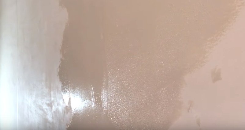 Для нанесения используем шпатель и металлическую гладилку. Шпателем набираем из ведра немного шпаклевки и наносим на край гладилки. Держим гладилку под острым углом к поверхности стены, распределяем смесь тонким слоем, совершая рукой полукруговые движения.