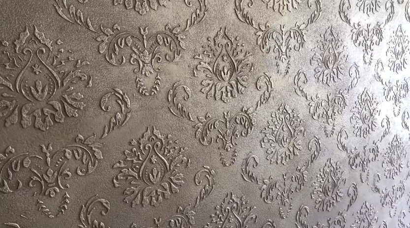 Первая техника — трафаретная. Для снижения общей стоимости отделочных работ в качестве основного материала используется самая обычная шпатлевка.