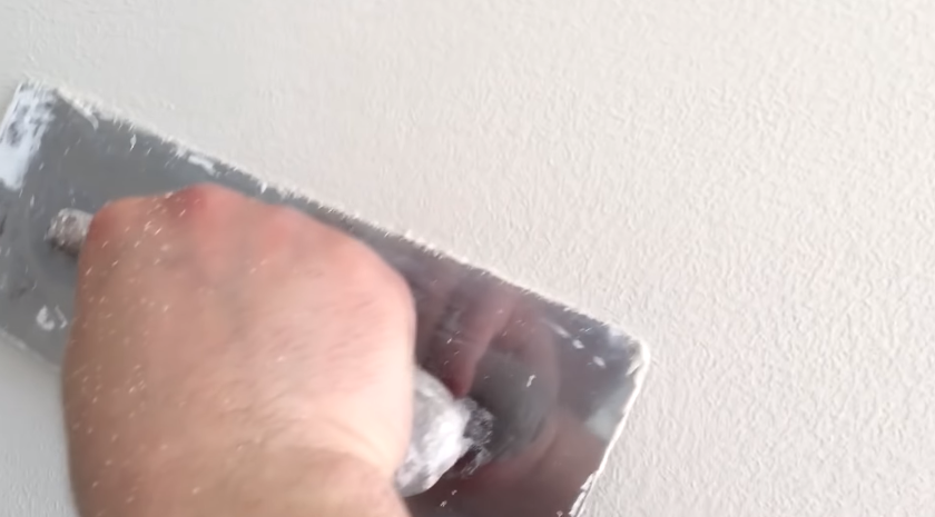 Шаг 2. Ждем, пока шпаклевка на стене загустеет и немного подсохнет. Сглаживаем фактуру, не слишком сильно нажимая на инструмент.
