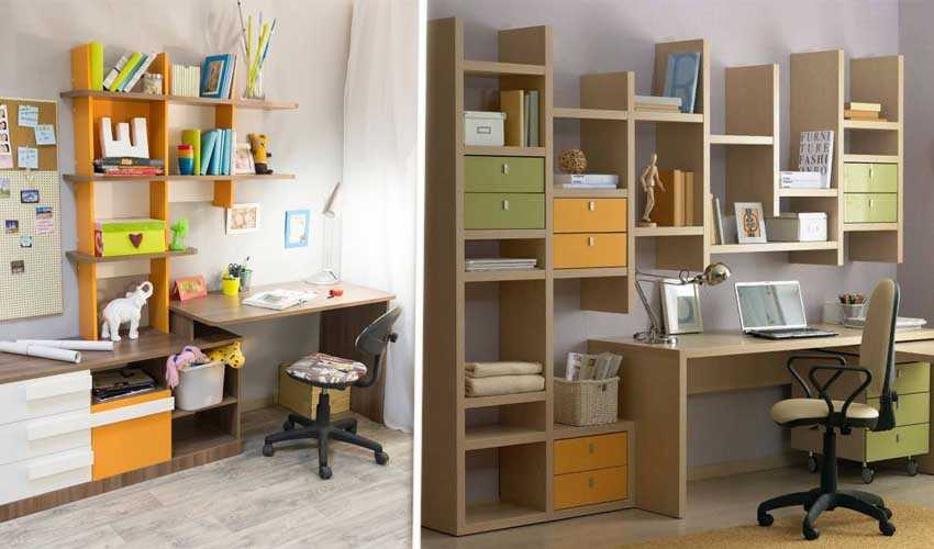 - Книжная полка должна быть рядом со столом. Так будет удобнее ставить книги на место.
