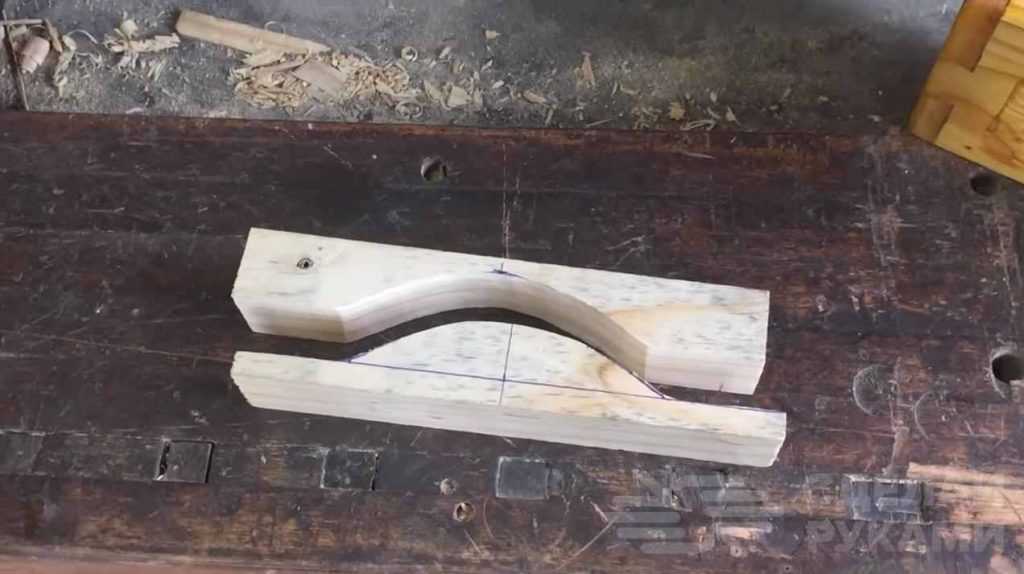 - Изготовление из доски поперечин с сечением в виде трапеции;