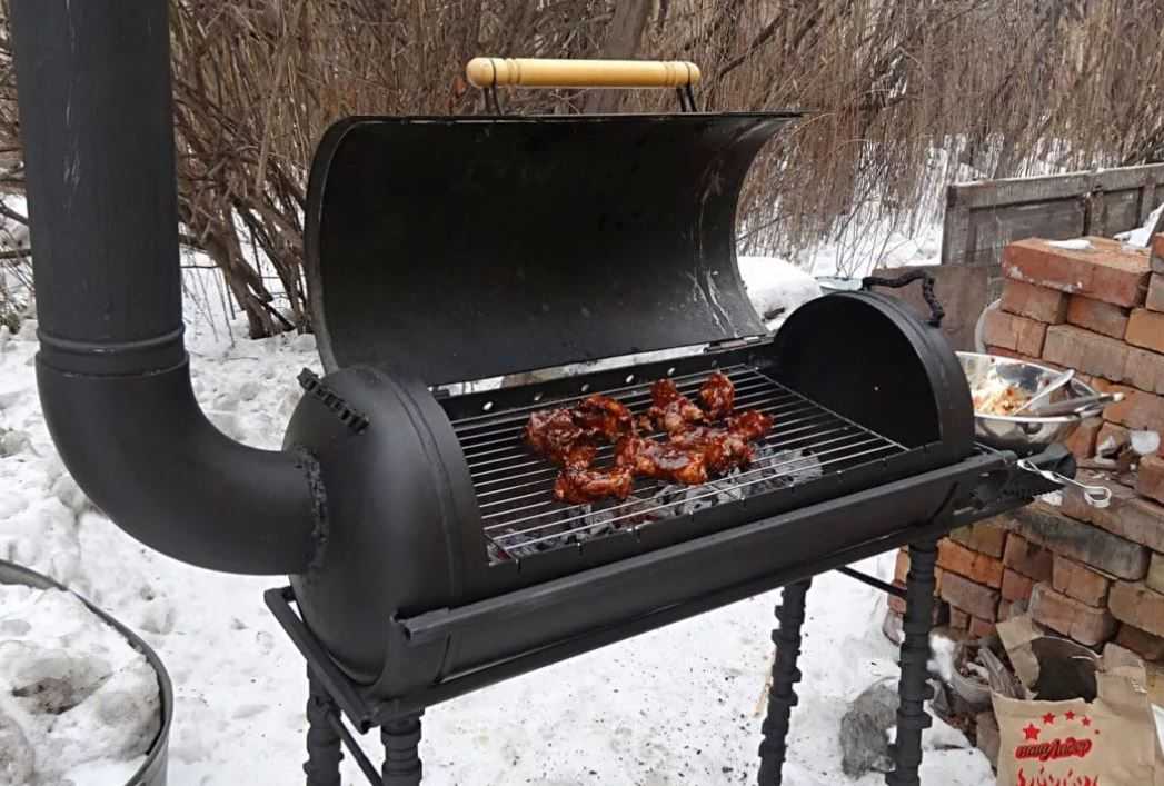 - присутствие крышки обеспечивает защиту продуктов и огня от осадков, кроме того, с ее помощью можно регулировать пламя.