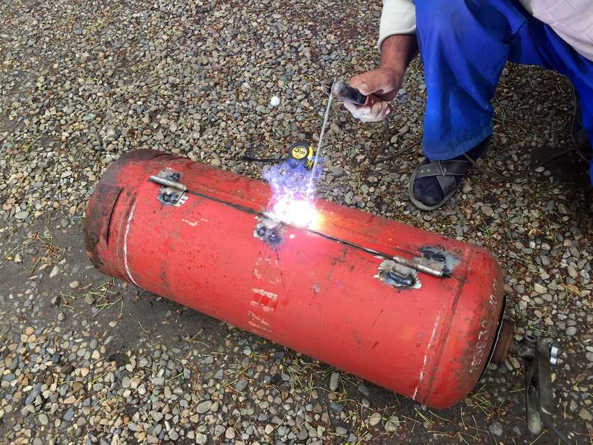 Завершающим этапом является срезание крана и заваривание полученного отверстия. Также в этом месте можно предусмотреть металлическую трубу для вывода дыма и проветривания мангала в закрытом состоянии. Мангал готов, осталось приделать к нему ножки. Детально увидеть все этапы можно на подборке фото «Как сварить мангал».