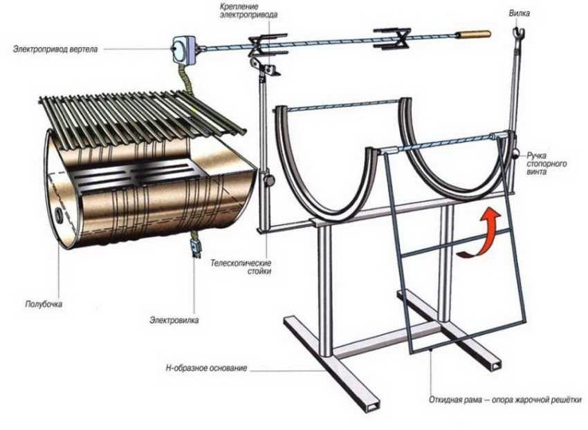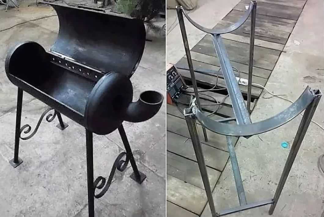 Стационарные ножки проще. Это могут быть простые трубы нужной длины, приваренные к днищу мангала. Вариантов много, выбор подходящего типа опор — прерогатива владельца.