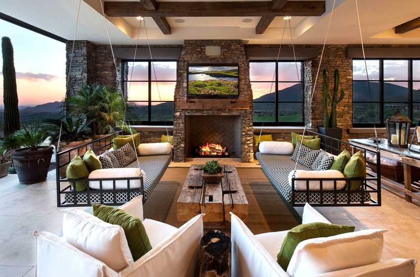 Веранда. При такой организации мангальная зона со всех сторон защищается от непогоды. В такой пристройке многие возводят надежный очаг с дымоходом, а некоторые даже сооружают рядом с мангальной зоной баню, которая сделает отдых еще более разнообразным. Крытая веранда с зоной для отдыха позволяет установить здесь основательную массивную мебель.