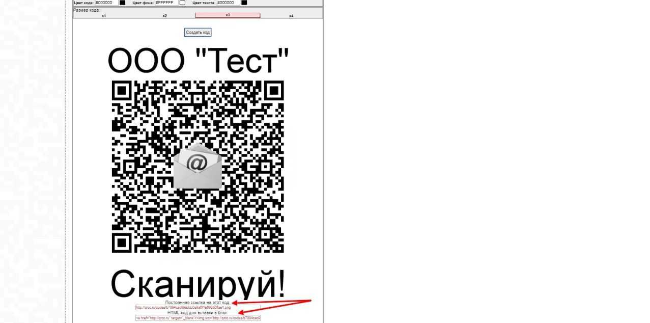 Подходя к вопросу, как получить QR код — нам осталось лишь кликнуть на «Создать код».