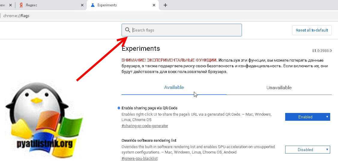 Вы попадете на страницу со всеми функциями браузера.В строке поиска введите: