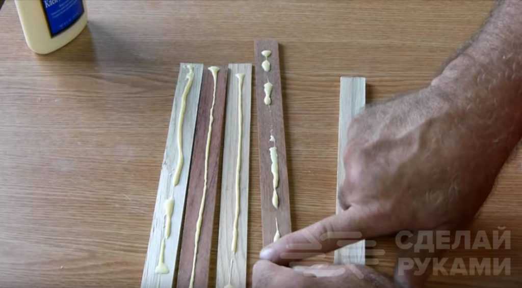 Теперь нанесите на древесину клей и равномерно распределите по всей поверхности, тщательно обработав каждый участок.