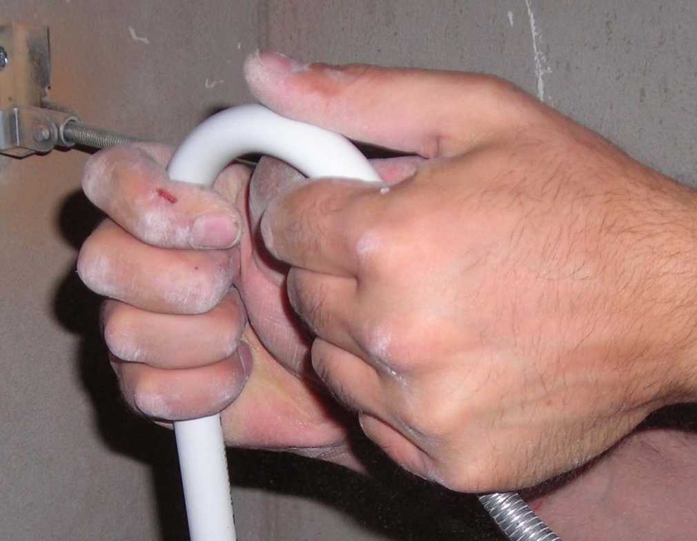 Этим способом можно согнуть только металлическую, металлопластиковую или пластиковую трубу с тонкими стенками, имеющую небольшой диаметр.
