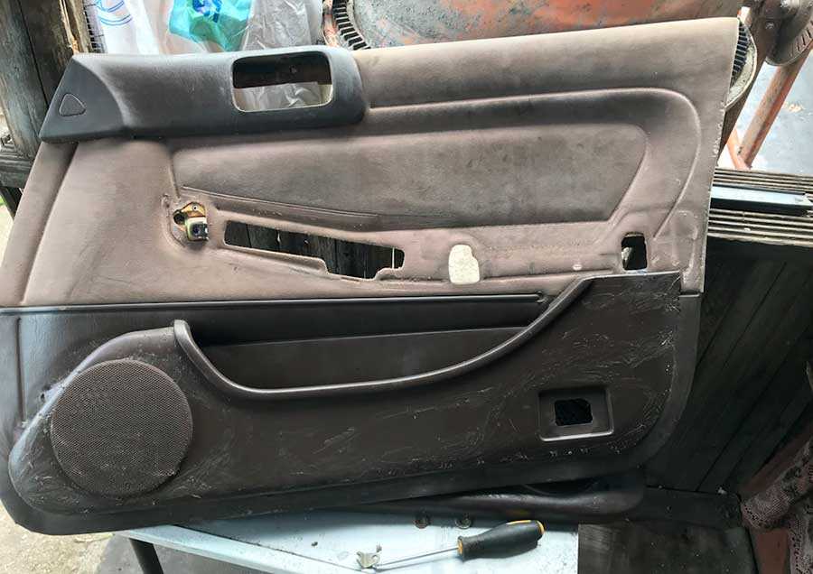 Если в дверях машины установлены электро стеклоподъемники, есть встроенные динамики, сбоку есть габаритный рассеиватель, то обшивку в этому случае демонтировать легче, но приходится снимать внешние накладки.