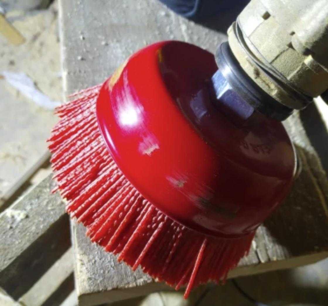 Это приспособление позволяет привлечь угловую шлифмашинку к работам по очистке деревянных, каменных и металлических поверхностей. Оно хорошо счищает ржавчину, старую краску, любое другое застарелое и устойчивое загрязнение. Также, щетку можно использовать при зачистке сварных швов.