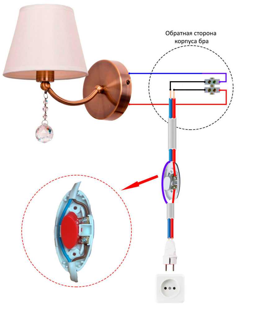 Веревочные и цепочные модели — как подключить бра с выключателем-шнурком?