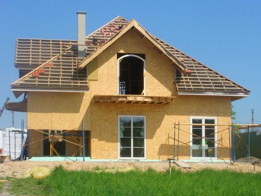 Каркас дома обшит ОСБ-плитами с внешней стороны