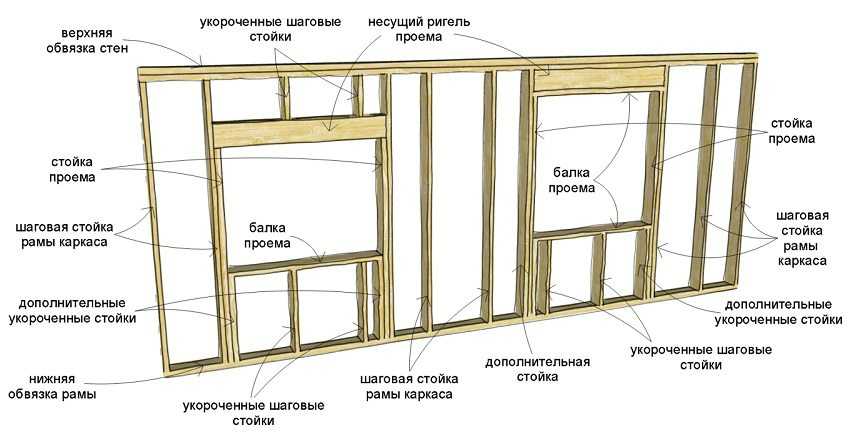 Элементы конструкции стены каркасного дома