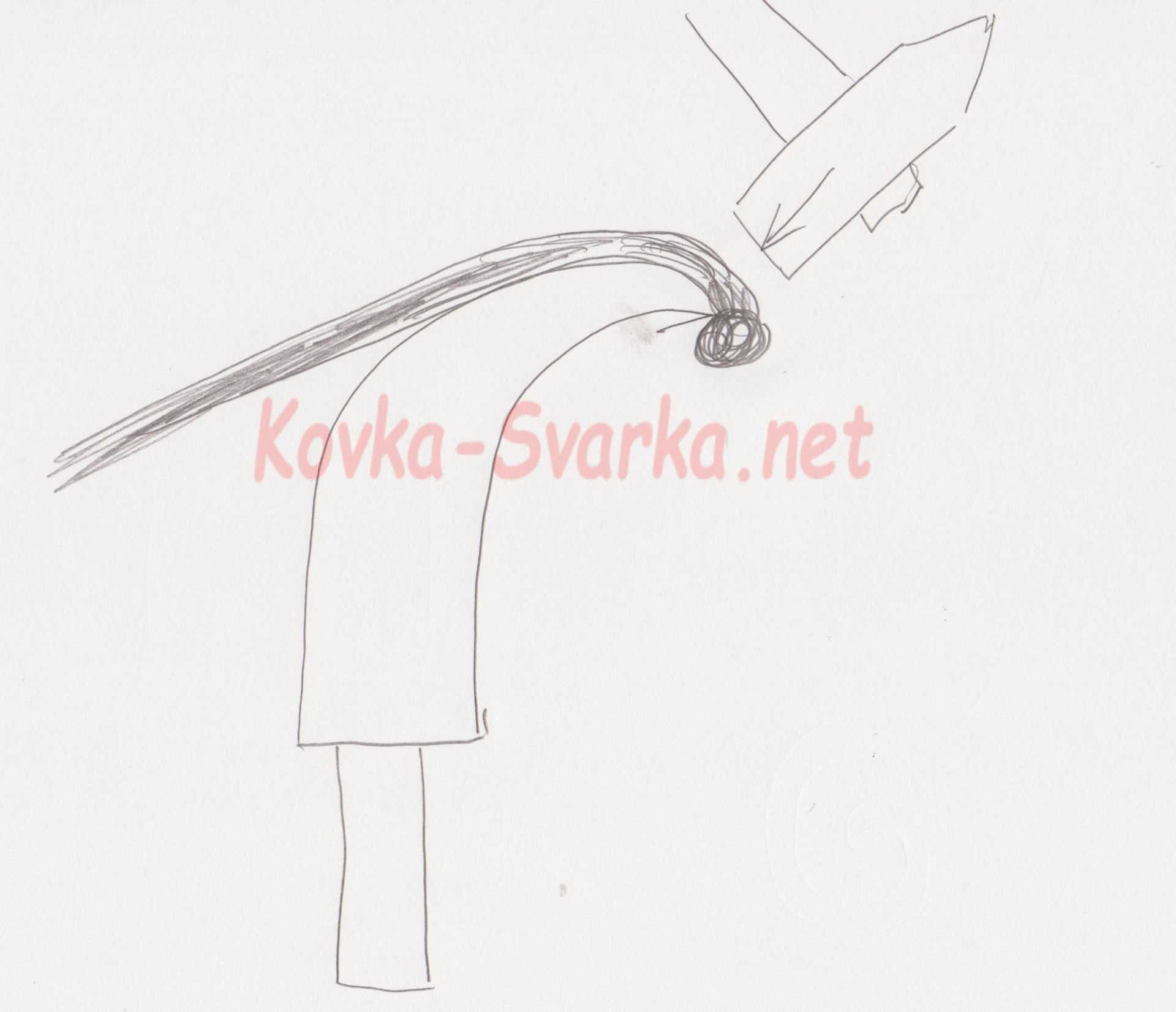 Если нужно выполнить гибку и получить объемную спираль, необходимо хвостик конической оправы и конец нагретого прутка зафиксировать в тисках. При этом витки на оправке нужно уложить как можно плотнее друг к другу. Длинна конца прутка не имеет значения.