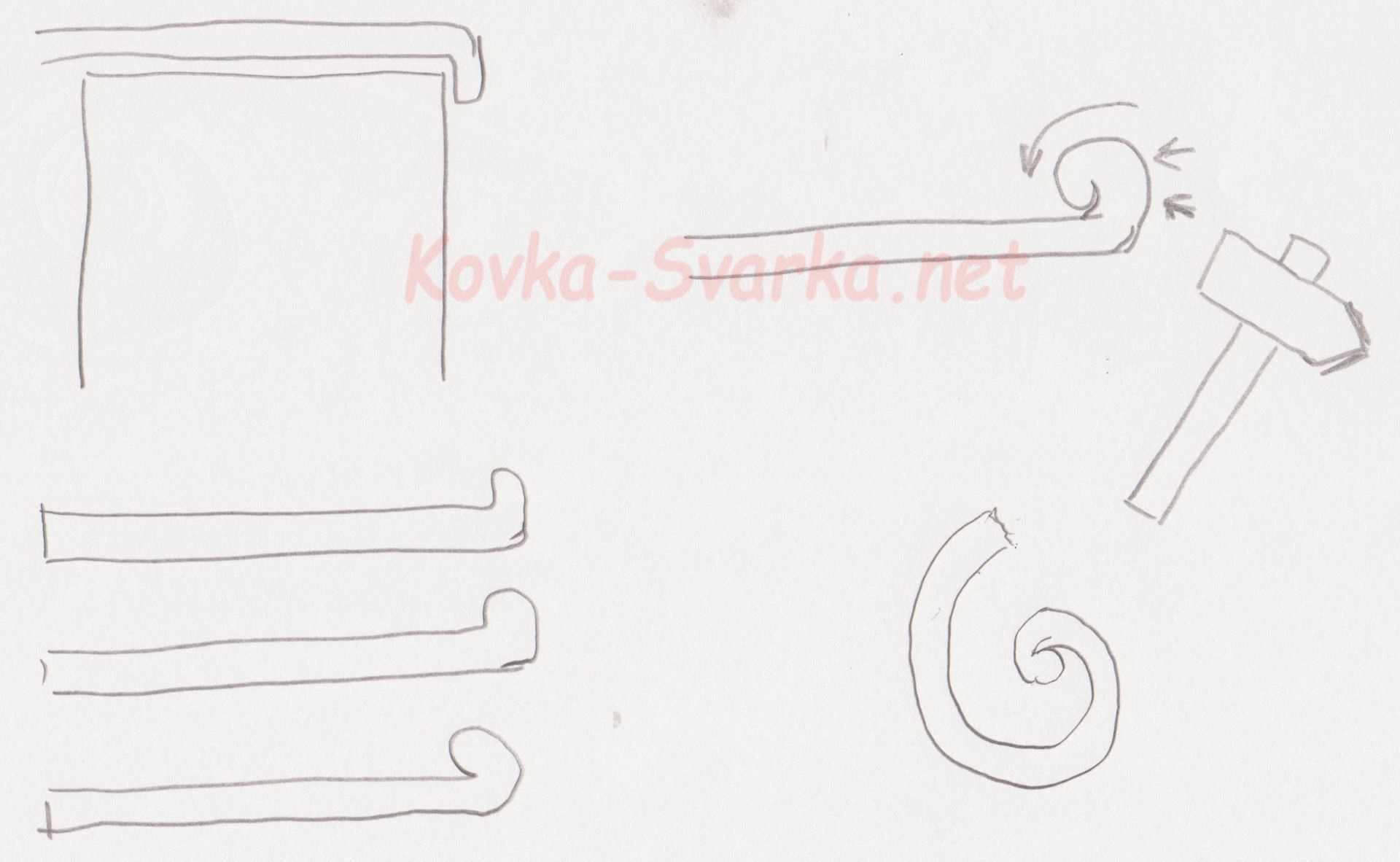 Гибку завитков делают на коническом роге наковальни или на оправке, форма которой напоминает некоторым перевернутый сапог.