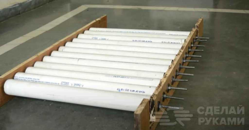 - Подготавливаем достаточное для образования «полотна» количество катков (можно взять одинаковые отрезки стальных или металлопластиковых труб, либо старые подшипники).