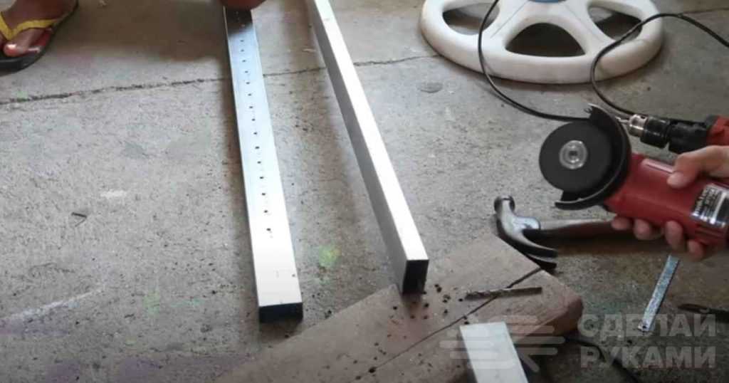 Для этого можно использовать профильную трубу. Отрезаем заготовки нужной длины, и свариваем их между собой. В боковых стенках нужно просверлить отверстия под болты.